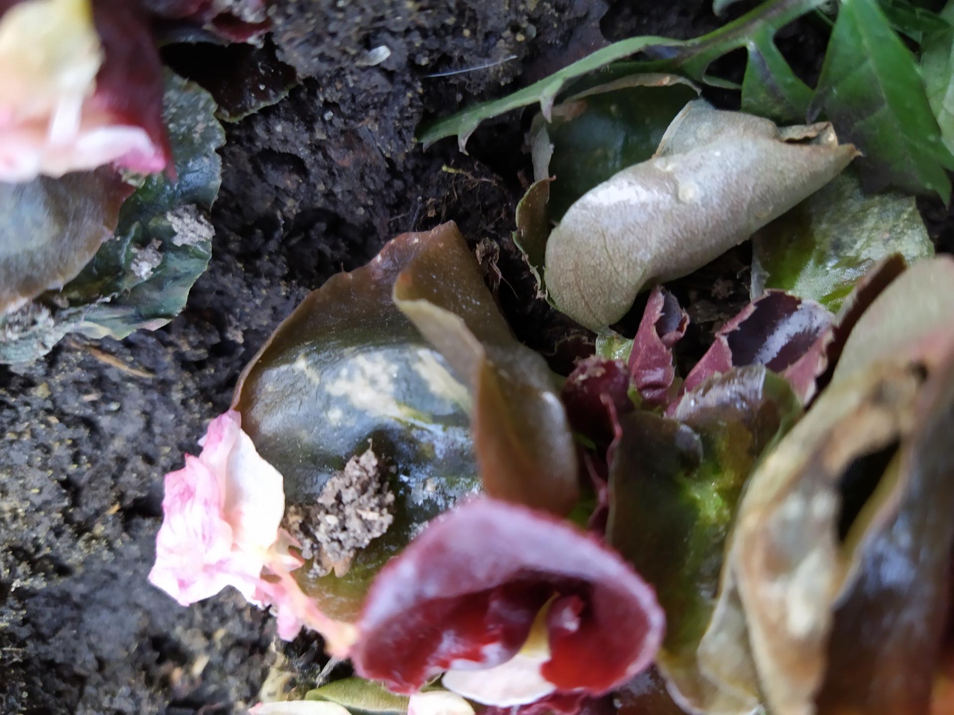 Listy jsou blátivé, některé průhledné jakoby okousané. Kytka zvadla.